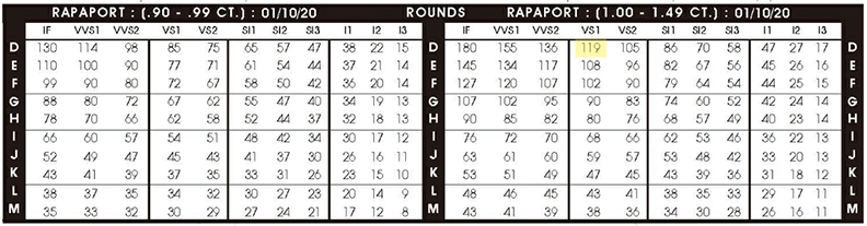 Rapaport ダイヤモンド価格表は、ダイヤモンド取引のプロがダイヤモンドの価格について参照している国際基準です。この価格表は、毎週木曜日(午後11時59分、東部標準時)に更新され、クライアントにメール配信されています。